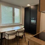1-pokojowy apartament Moderno Stanovanje - Ptuj oferuje miejsce do pobytu dziennego, balkon i pełnowymiarową kuchnię z widokiem na ulicę oraz udogodnienia, takie jak klimatyzacja. Aby zapewnić Ci komfort, apartament oferuje oddzielną toaletę i prysznic. W łazience znajdują się suszarka do włosów i ręczniki.